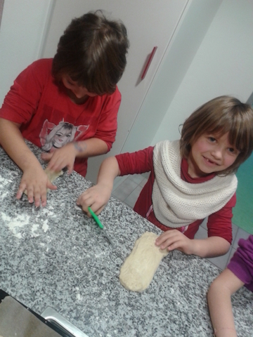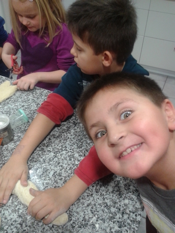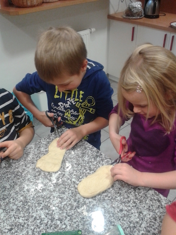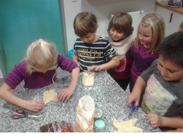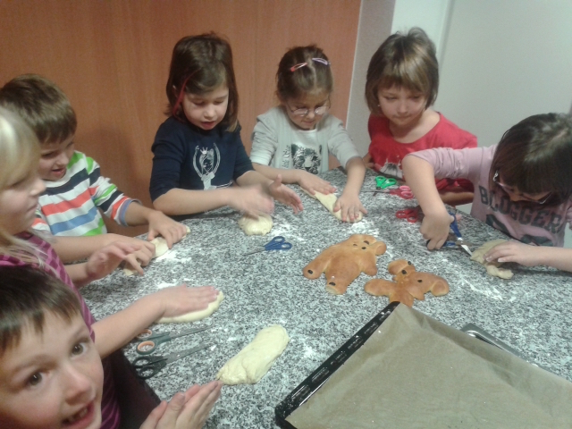 In der Krampus- und Nikolozeit haben wir selbst Krampuse hergestellt. Zuerst haben wir den Hefeteig mit warmer Hefe, Milch, Eiern, Mehl, Butter und etwas Zucker und Salz vermengt und dann eine Stunde gehen lassen. Danach haben wir aus dem fertigen teig Krampuse gestalten und sie gebacken. Die waren sehr lecker!