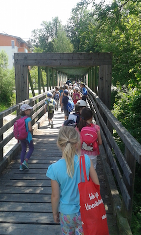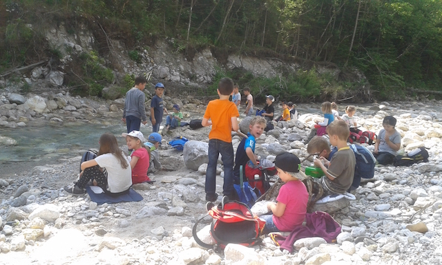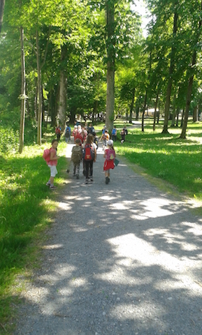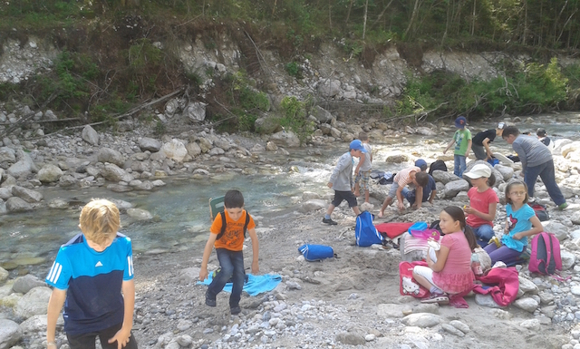 In unserer Nähe gibt es viele Wälder. Darum gingen wir mit unseren Lehrerinnen in den Wald um die Verschiedenheit der Bäume und Pflanzen zu erkennen. Da es an diesem Tag sehr heiß war, konnten wir uns am Bach nebenan Kühlung verschaffen. Wir haben auch gelernt, dass jeder Baum eine eigene Rinde hat und diese bei jedem Baum anders aussieht.