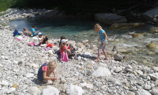 Ob lepem vremenu smo se napravili v gozd. Na poti smo naredili pavzo pri potoku in se tam krepko spoÄili in oddahnili. V gozdu smo spoznali, koliko razliÄnih dreves je in da ima vsako drevo drugo skorjo.