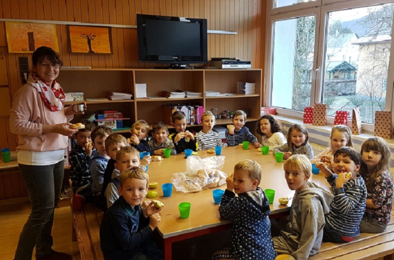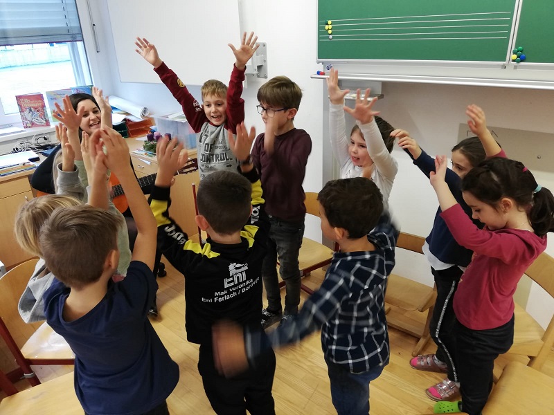 Es ist Dienstagmorgen, kurz vor dem Läuten. Die Kinder der 1. und 2. Klassen der Volksschule 1 in Ferlach sind schon ganz aufgeregt, denn sie erwarten einen lieben Besuch… Schon hören wir fröhliche Kinderstimmen, die die Ankunft der Kinder mit ihrer Erzieherin Trixi Verdel des zweisprachigen Kindergartens „Jaz in ti/Du und ich“ ankündigen. Etwas liegt in der Luft…. Advent im wahrsten Sinne des Wortes – ANKUNFT…
