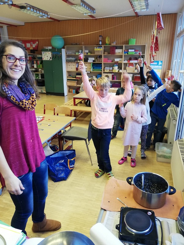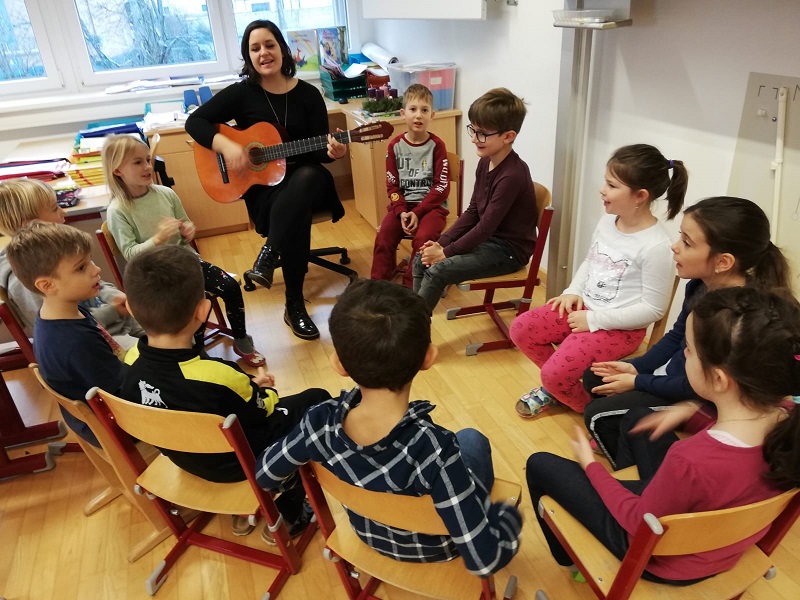 Mit Bewegung und Musik wurden die Kinder von der Lehrerin Anja Oraže in eine vorweihnachtliche Stimmung begleitet. Weihnachtliche Lieder aus aller Welt hallten stimmungsvoll durch den Gang.