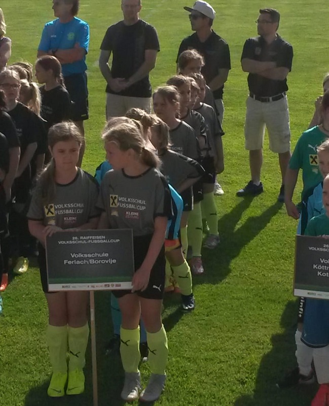 Am Mittwoch, den 12. Juni 2019, fand in St.Veit an der Glan das Landesfinale des Raiffeisen Volksschul-Fußballcups statt. Alle Mannschaften, die bei den Bezirksausscheidungen weiterkamen, spielten beim Landesfinale. Die Schülerinnen der Volksschulen Ferlach waren mit der Mädchenmannschaft dabei. Vier mal verhinderte die Torstange weitere Siege. Schließlich erreichten sie den guten achten Platz. Wir sind sehr stolz auf unsere Mädels!!