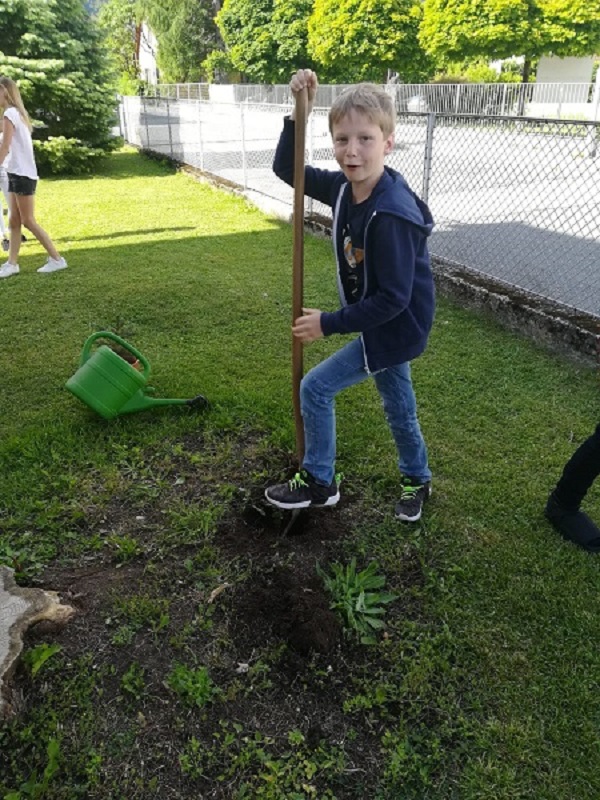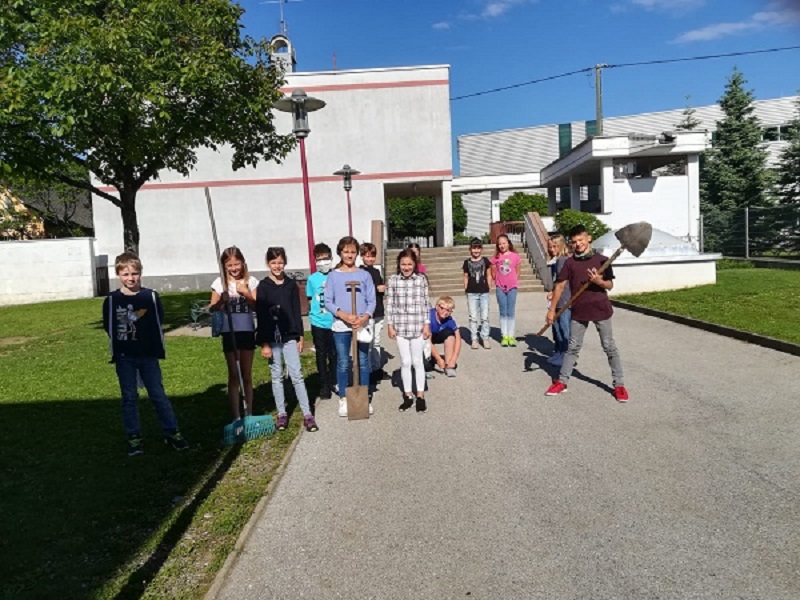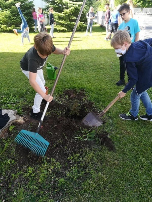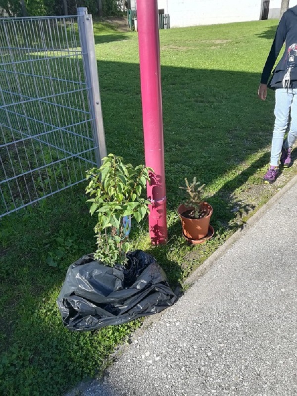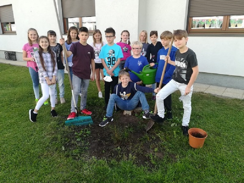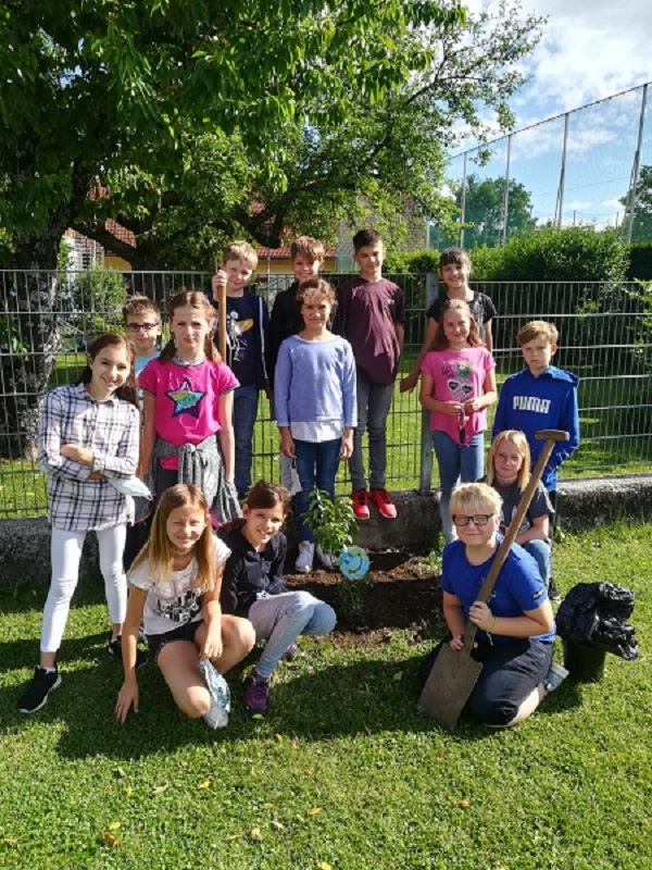 Učenke in učenci 4.b razreda so vsadili drevesi kot znak zaščite podnebja.